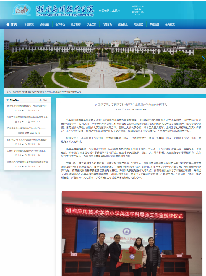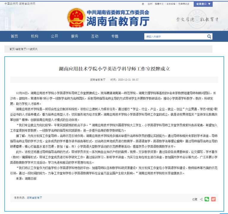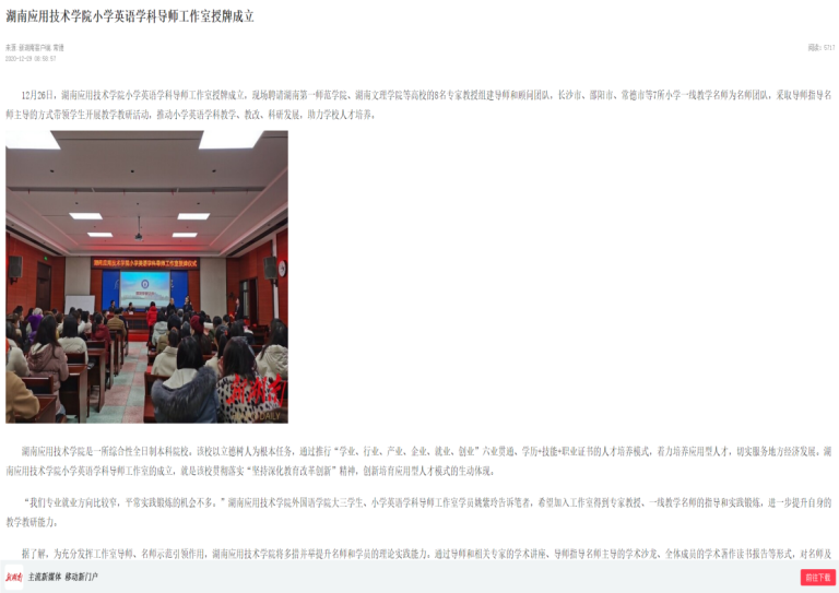 1. (湖南日报)湖南应用技术学院小学英语学科导师工作室授牌成立(新闻来源:https://…
