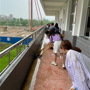 2020月6月15日上午7点30分,我院2020年上半年的19位党员发展对象,为进一步美化校园环境,不怕脏不喊累,个个奋勇当先,相互配合,积极清扫教学楼走廊以及楼道积水、清洁地面。由于闷热的天气和劳动的强度,他们挥洒着汗水,但都乐在其中。经过一个早晨的清扫,教学楼的卫生面…