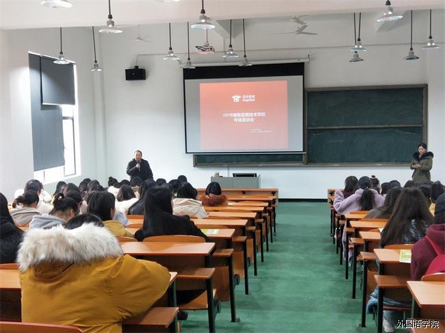 首先,书记梁英以简明概要的开场白引入正题。吴洁琼老师紧接其后开始宣讲,主要从公司的创始人、公司优势、核心竞争力、工作环境以及福利待遇等多个方面对公司作了详细的介绍,让在座的同学们对贝尔教育有了初步认识。而后,进入答疑时间。由老师茱莉娅为大家答疑解惑,同学们都积极踊跃的进行了提问且问题都十分具有见解性,分别从工作时间、薪资待遇、工作流程等多个与自身贴切相关的问题作为出发点进行询问。茱莉娅不胜其烦,耐心解答,细致地分析大家想知道却还未清楚的地方,让大家对公司有了更为深入的了解。最后,感兴趣的同学填写了简历并进行面试环节,老师和同学们一对一进行面试交流,面试成功后并立即发放录取通知书。