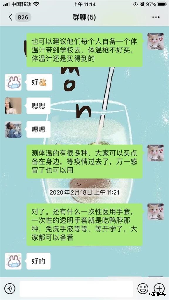 2. 关注统计学生四六级,专四的学习的情况,分享英语专业学习资源,提醒学生在家也要努力学习,不能松懈。