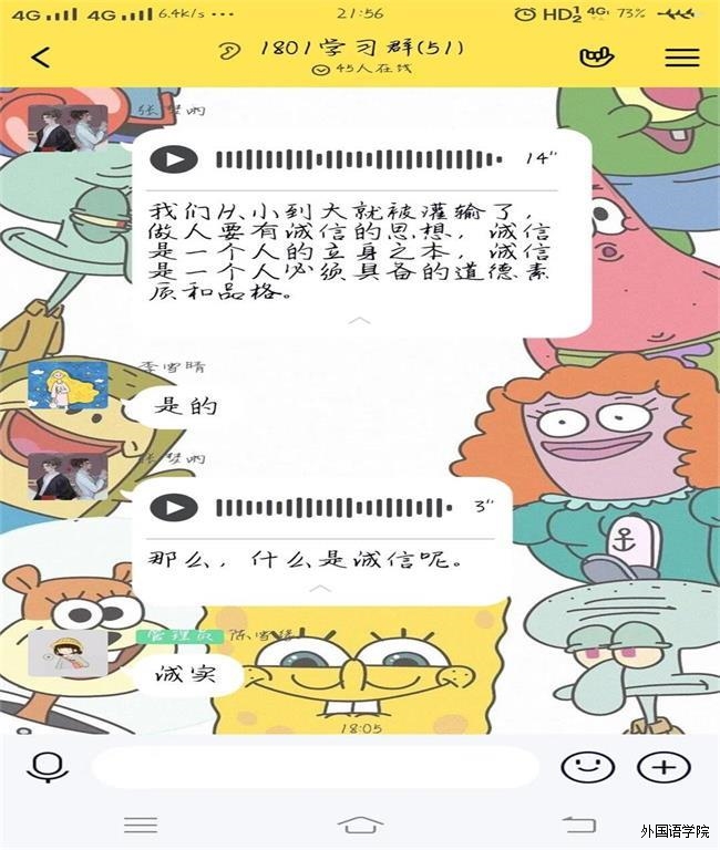 为深入贯彻习近平新时代中国特色社会主义思想,提高家庭经济困难学生资助水平,强化资助工作的育人效果,进一步提高大学生的诚信意识和综合素养。对此,我院积极响应并于2020年5月10日完成了“诚信教育”线上主题班会的开展。 本次班会主要围绕“什么是诚信、影响诚信问题的因素以及有关诚信问题的解决方案”三大方面进行展开。所谓诚信,其实是一个道德范畴,一般指的是待人处事真诚、老实,其特征是通识性、智慧性、止损性、资质性。影响诚信问题的因素主要分为人为因素和现实因素两大类;关于解决诚信问题,主要也是以人为和现实两方面为出发点。