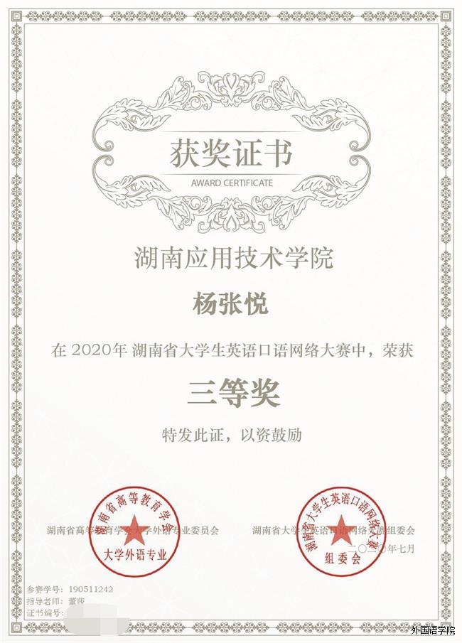 喜报!我校学子在“湖南省第三届大学生英语口语大赛”中荣获奖项!