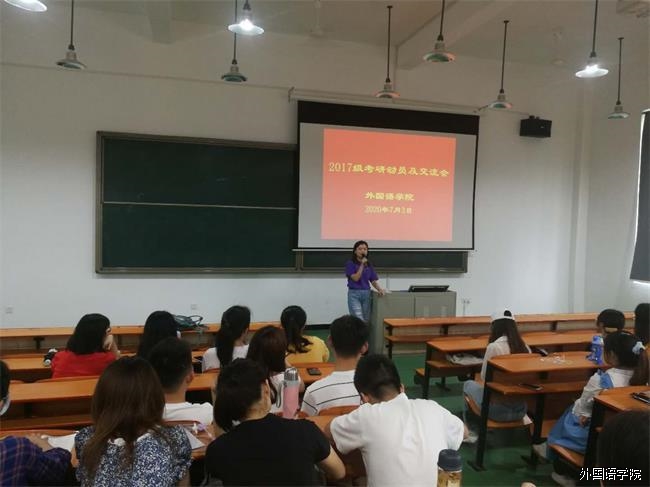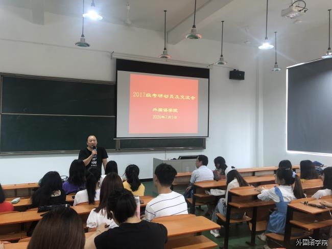 为激励并指导我院17级考研学子,7月3号下午两点半,外国语学院在42D203教室召开了17级考研动员大会,评估顾问陈勇教授、郭俊兰院长、梁英书记、院长助理王中兰老师、曾祥英老师参加了此次动员会,会议由梁英书记主持。