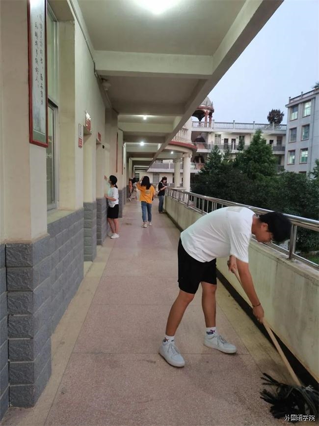 2020年9月1日18:30,为迎接“全国文明城市”评选活动,也为营造一个干净、舒适的学习、生活环境,以崭新的校容校貌迎接新学期的到来,我校特组织学生义务打扫校园卫生,其中我院第29期入党积极分子在外国语学院党支部副书记梁英的组织下义务打扫29栋办公楼和27栋教学楼卫生。