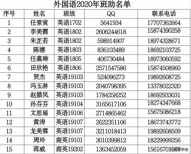 各班及各大组织学生积极报名,在各方面对比筛选后,院内共有48人通过初选。接着,班助候选人们用视频的形式自我介绍并阐述对班助的理解,经书记审核,共有30名候选人通过进入复选。2020年8月24日晚七点二十分,钉钉线上复选会议正式开始,会议共分为两项内容,首先由主持人对候选人们随机依次提出问题,候选人及时作出解答;然后主持人继续提出5个问题,候选人们进行抢答,经过一个多小时的紧张提问,复选竞选会议圆满结束。经初选、复选及各同学个人平时表现,秉着公平、公开、公正,择优录取的原则,团总支书记处、学生会主席团及党支部副书记梁英商议决定,推选出以下15名同学为我院2020年班主任助理。