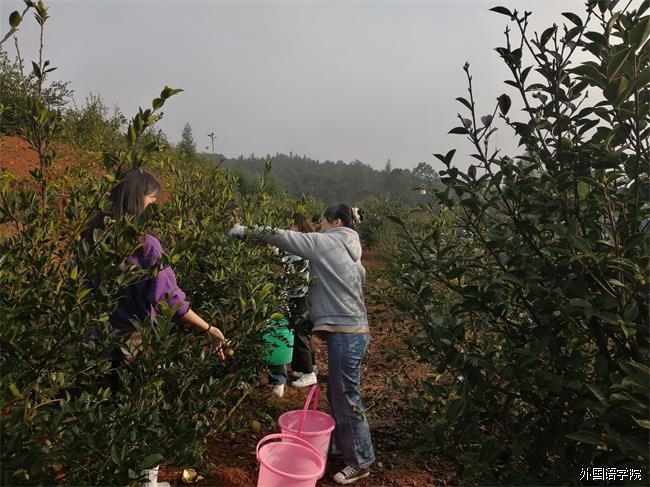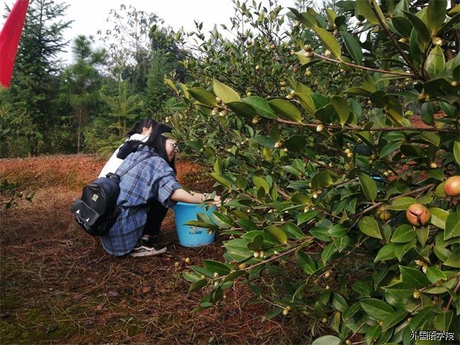 2020年10月19日,为了让学生得到身心锻炼,团结协作,积极交流,第30期入党积极分子在外国语学院党支部副书记梁英的组织下,前往学校丁家港油茶基地摘茶籽。