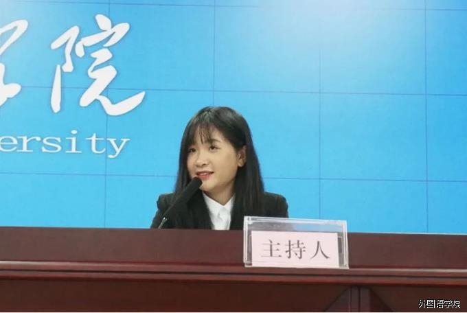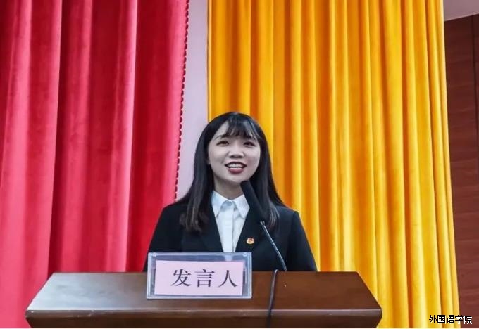 通讯队负责人龚齐发言,她用热情感染队员,希望各干部能组织好宣传工作,更好的服务外国语学院。: