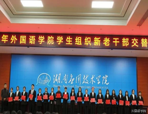 其后,校团委书记侯飞燕,党委学工部副部长、武装部部长陈磊,外国语学院党总支书记梁英分别为团总支、学生会、通讯队离任干部颁发任职证书并合影留念。