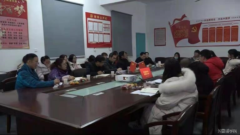 2月10日下午,校长李旋旗来到外国语学院进行现场办公,会议在西校区29栋401会议室召开,会议由常务副院长郭俊兰主持。校长李旋旗、党政办主任杨宏禧、教务处处长、外国语学院顾问陈勇教授以及外国语学院全体教师参加了会议。