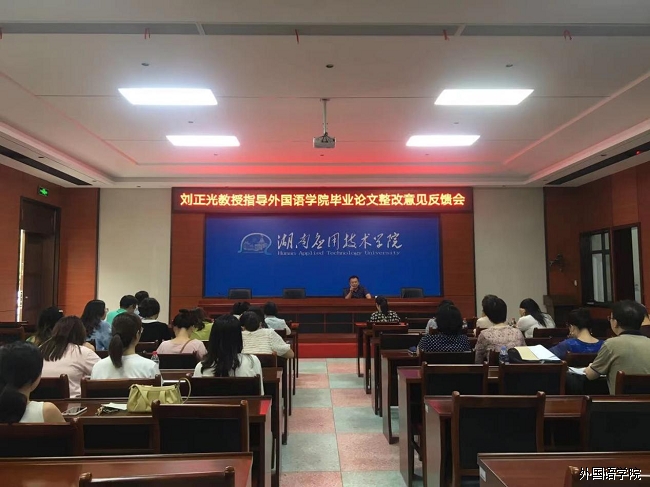 在阅读了我院学生的毕业论文后,在下午4点30召开的外院毕业论文整改意见反馈会上,刘正光肯定了我院的毕业论文的管理规范;但同时,对我院毕业论文摘要、论文框架模式、参考文献的规范等提出了中肯的建议。刘正光也激励各位教师,修改论文的过程其实也是自身提高的过程。