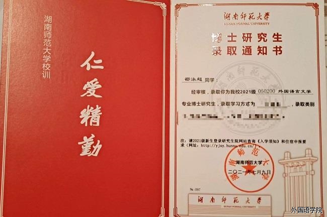 日前传来喜讯,我院青年讲师邵泳超考取湖南师范大学外国语言文学专业博士研究生,师从唐燕玲教授。邵泳超将继续在我院工作任教,为学校做贡献。