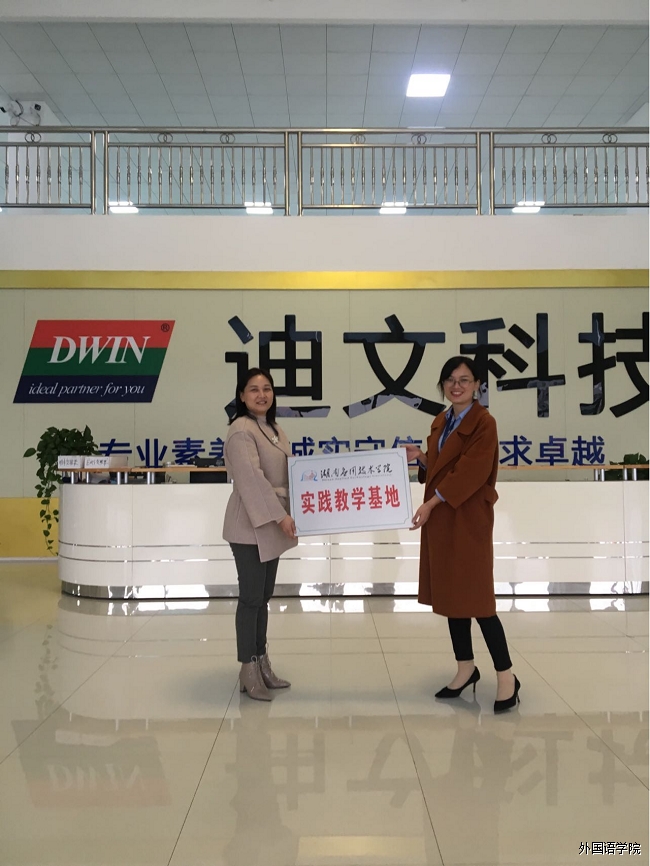为了进一步加强外国语学院院外实习基地建设,推动产教融合发展,提高实习质量和应用型人才培养质量,2021年10月30日,外国语学院常务副院长郭俊兰、顾问陈勇教授、院长助理王中兰、院长助理张波来到湖南迪文科技有限公司考察实习就业基地。