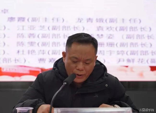 校团委书记侯飞燕做总结发言,他感谢大家对外国语学院学生组织的认可,肯定了这些干部的工作并表达了对新干部的殷切希望。