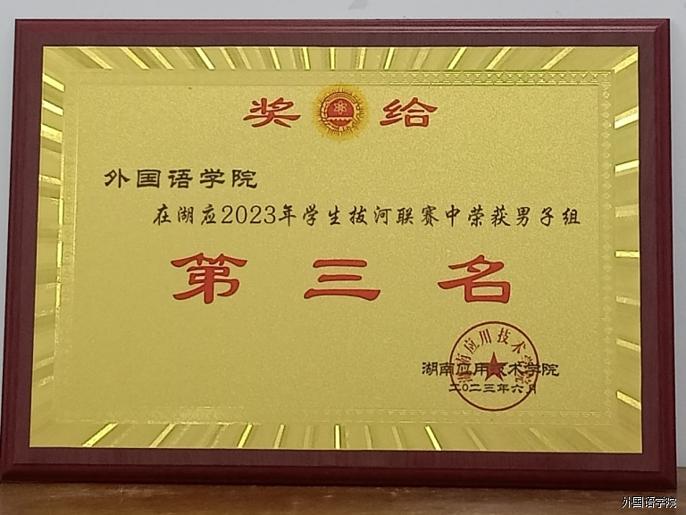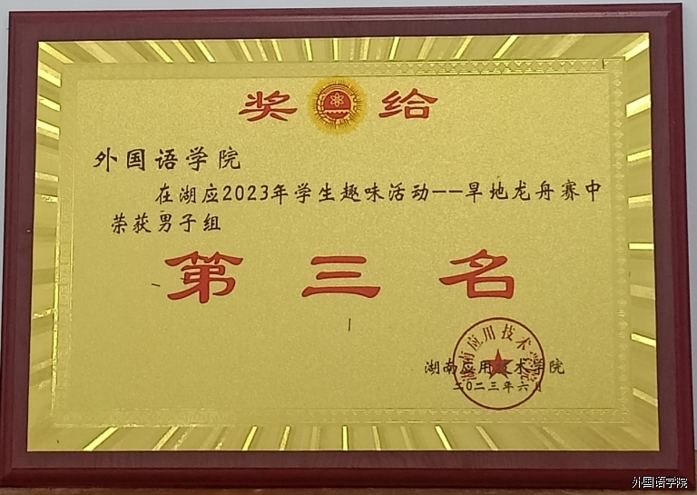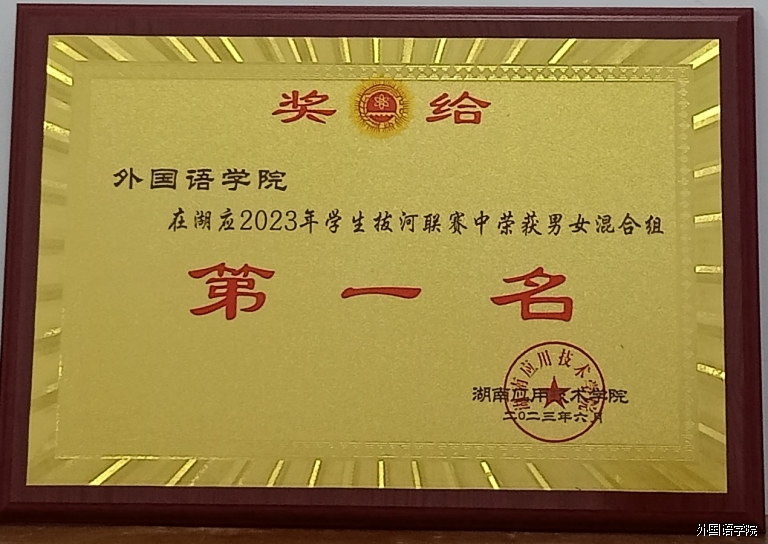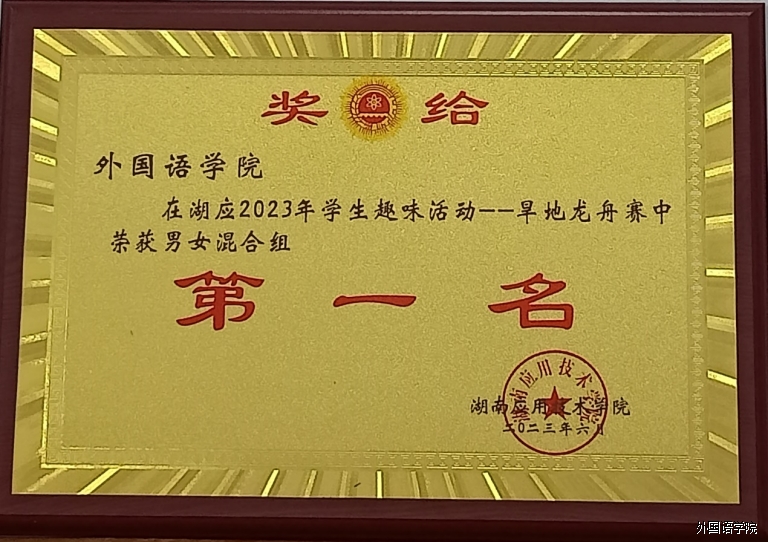 2023年上半年,我校开展了许多丰富多彩的体育活动。在各类体育赛事中,外国语学院团结一致,奋勇拼搏,表现突出,荣获学生趣味活动旱地龙舟赛“男子组第三名”、“女子组第一名”、“男女混合组第一名”;在“湖应杯”学生排球比赛中荣获“女子组第三名”;学生拔河联赛荣获“男子组第三名”、“女子组第一名”、“男女混合组第一名”。同时,在湖南应用技术学院2022–2023学年课外体育活动中,荣获团体积分第一名的辉煌赛绩。