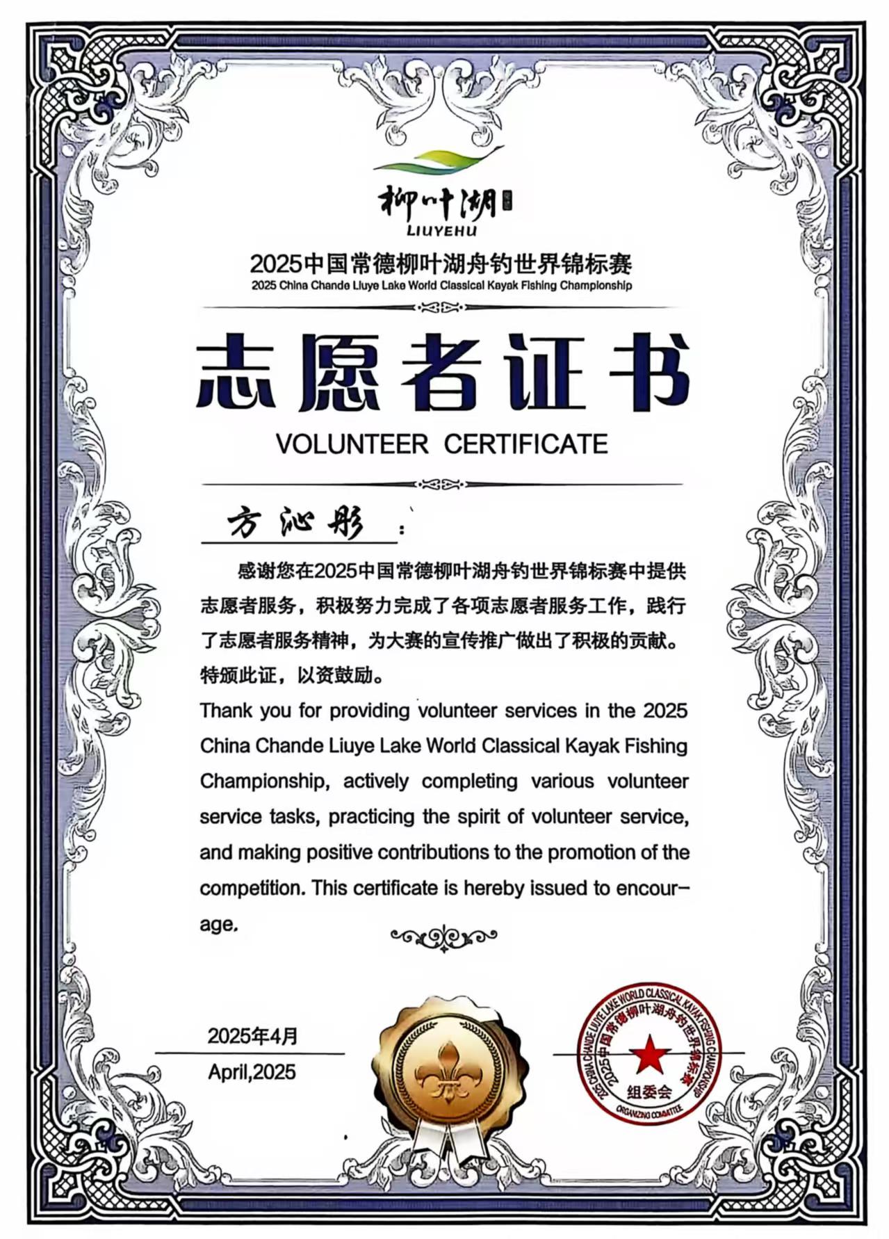4月22日,2025中国常德柳叶湖舟钓世界锦标赛开幕式在柳叶湖旅游度假区隆重举行,来自21个国家的120名顶尖钓手及中外嘉宾齐聚现场。外国语学院商英23102班学生方沁彤以英文主持人兼同传翻译的双重身份亮相,用流利语言与专业素养搭建起国际沟通桥梁,成为开幕式上一道亮眼的青春风景线。