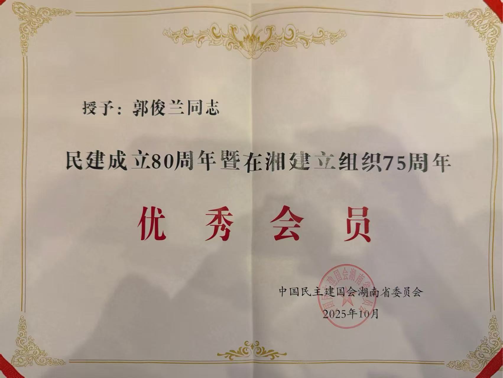 外国语学院郭俊兰获评民建优秀会员