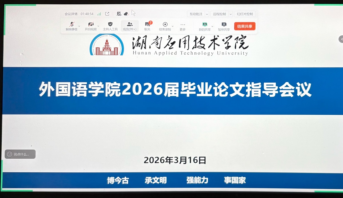 为规范2026届毕业论文撰写流程、明确要求、提升论文质量,也为更好地做好2026届毕业论文的中期检查工作,3月16日晚7点,我院通过腾讯会议线上召开2026届毕业论文指导会议。22级全体本科学生及全体论文指导老师悉数参会,学院副院长王中兰主持会议。