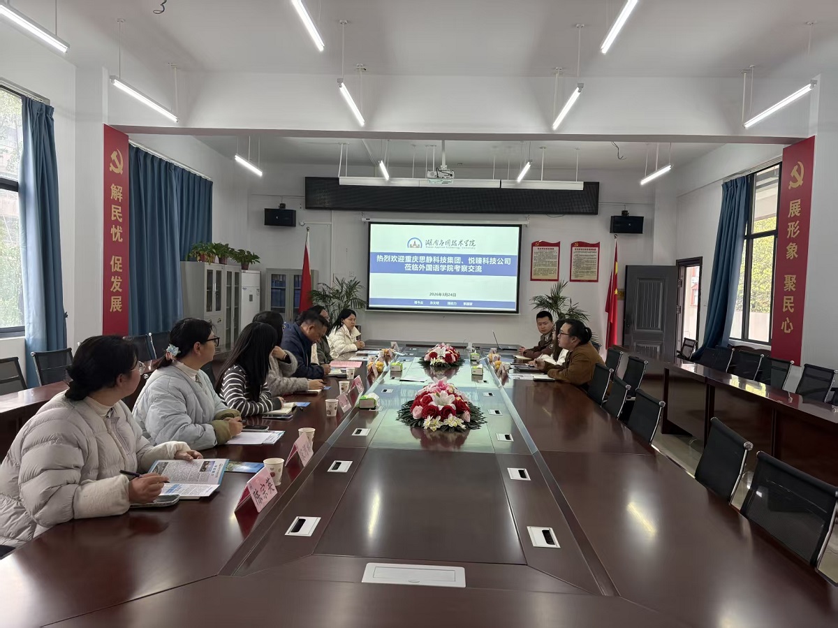 3月24日,重庆思静科技集团和悦臻科技咨询有限公司代表莅临外国语学院走访考察。学校和学院的相关领导及26届毕业班全体辅导员出席了本次交流活动。
