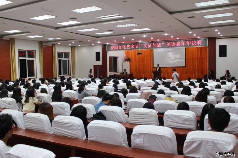 【口播】由教务处、学生处主办,校学生会学习部和外国语学院学生会学习部承办,校园电视台和意心影视工作室全程协办的第十届校园文化艺术节之英语嘉年华决赛于4月24日晚7点在广言堂二楼举行。请看报道: