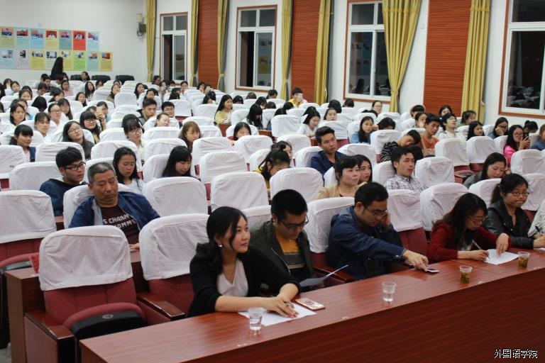 【配音】此次活动旨在活跃校园英语学习氛围,激发同学们学习英语,说英语的热情,同时也为同学们展现自信自强的风采提供了舞台。本次决赛,由外国语学院副院长郭俊兰,专业老师杨华丽、王华、李妍、郭祎、邵永超担任评委;团委书记李友谊、学生处副处长贺修裕、外国语学院院长助理陈磊及二级学院学生会相关负责人观看了比赛。