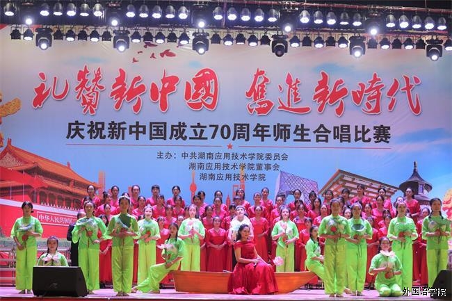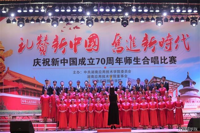 我院于2019年9月29日在东校区演艺厅参加《礼赞新中国,奋进新时代》,在外国语学院参赛成员、组织成员的共同努力下,我院取得庆祝新中国成立70周年师生合唱比赛二等奖的优异成绩!