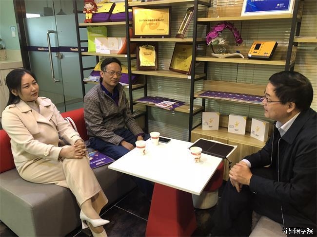 2019年10月27日外国语学院顾问陈勇教授和常务副院长郭俊兰前往长沙,看望正在湖南贝尔安亲云教育有限公司实习的17级商务英语专业的学生们,陈勇向公司负责人了解了学生的工作和生活情况,并嘱咐一定要保证学生的安全和健康。