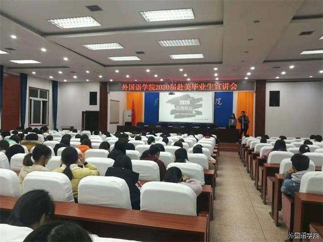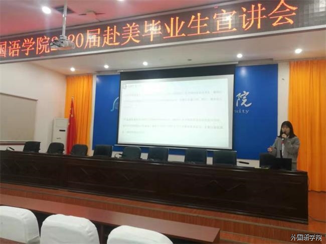 2019年12月05日下午7:00,我院在东校区举行了2020界赴美毕业生宣讲会,本次宣讲会主要针对大四英语16级本科,17级英语本科。